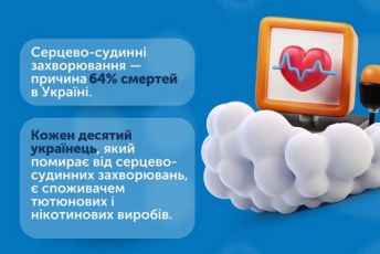 Серцево-судинні захворювання — причина 64% смертей в Україні. І кожен десятий українець, який помирає від серцево-судинних захворювань, є споживачем тютюнових і нікотинових виробів.