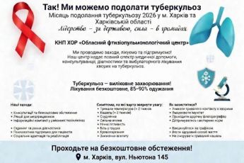 КНП ХОР «Обласний фтизіопульмонологічний центр» інформує про місяць подолання туберкульозу 2026, що проводиться під гаслом «Так! Ми можемо подолати туберкульоз!».