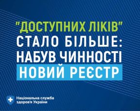 УРЯДОВА ПРОГРАМА «ДОСТУПНІ ЛІКИ»: РОЗШИРЕНО РЕЄСТР ЛІКАРСЬКИХ ЗАСОБІВ