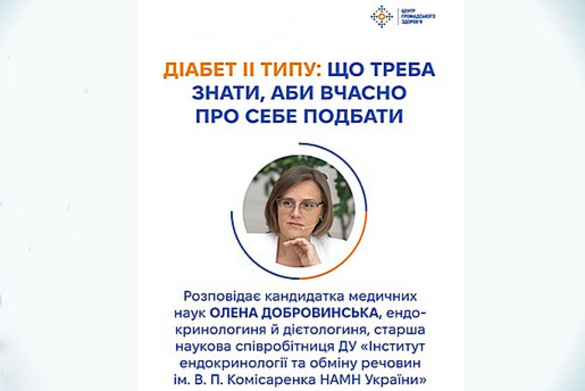 У матеріалі Центру громадського здоров’я у співпраці з кандидаткою медичних наук Оленою Добровинською, ендокринологинею й дієтологинею, старшою науковою співробітницею ДУ «Інститут ендокринології та обміну речовин ім. В. П. Комісаренка НАМН України», розповідаємо перевірені факти про цукровий діабет II типу, які допоможуть краще зрозуміти хворобу та знизити ризики її розвитку.