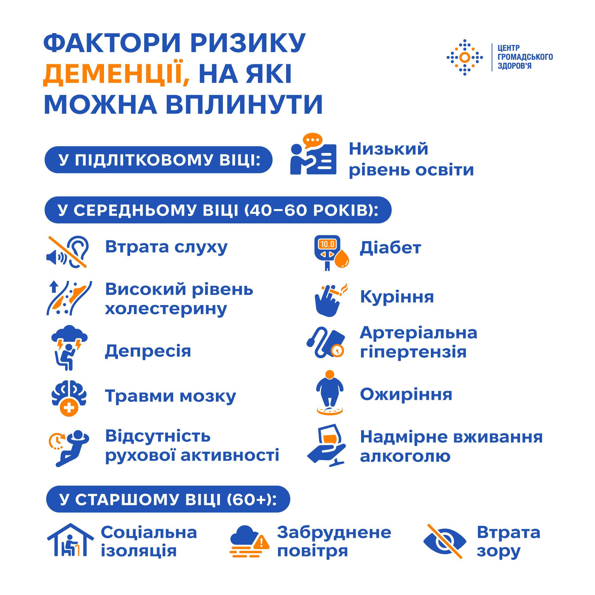 ФАКТОРИ РИЗИКУ ДЕМЕНЦІЇ, НА ЯКІ МОЖНА ВПЛИНУТИ