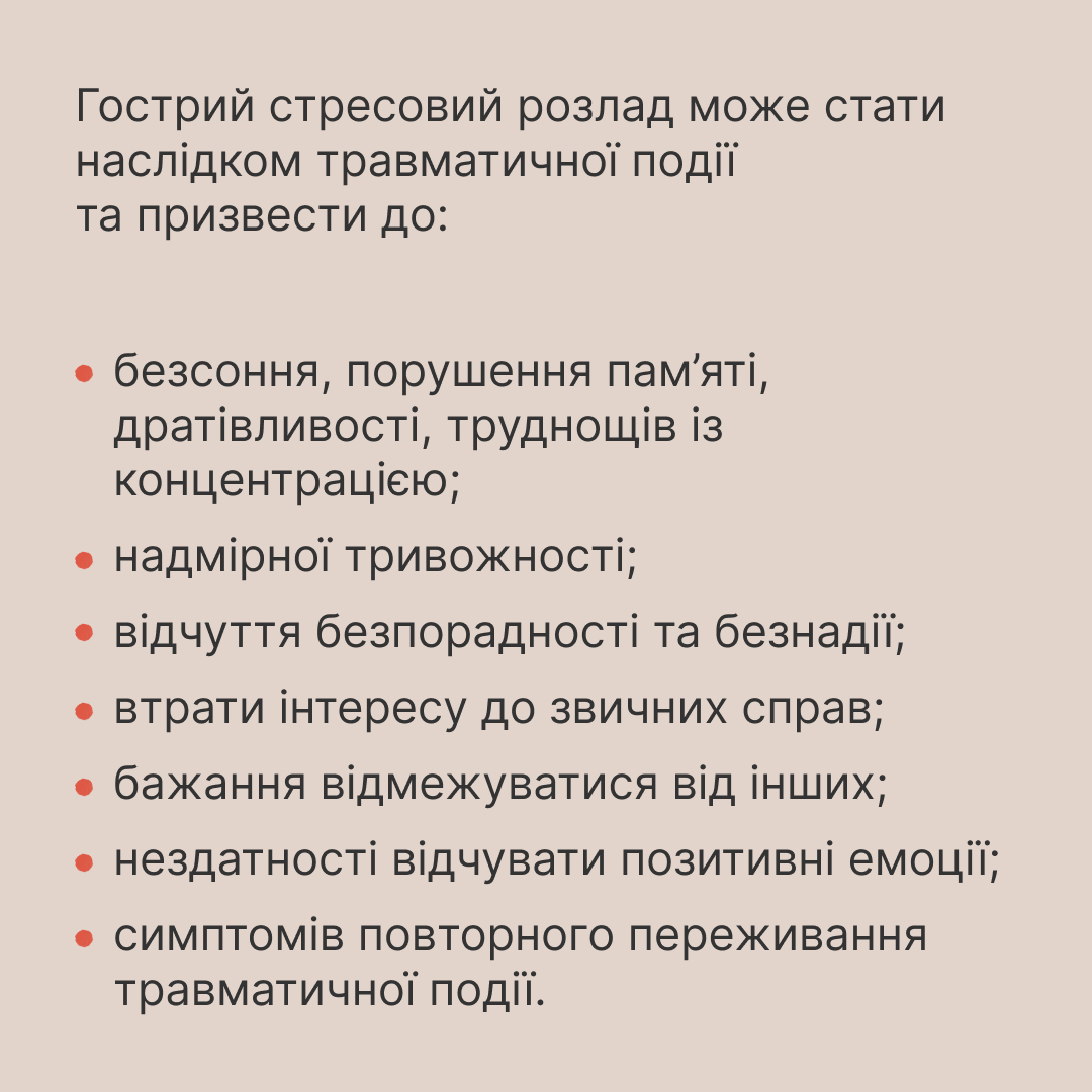 ГОСТРА РЕАКЦІЯ НА СТРЕС. МОЖЛИВІ НАСЛІДКИ ВОРОЖИХ ОБСТРІЛІВ