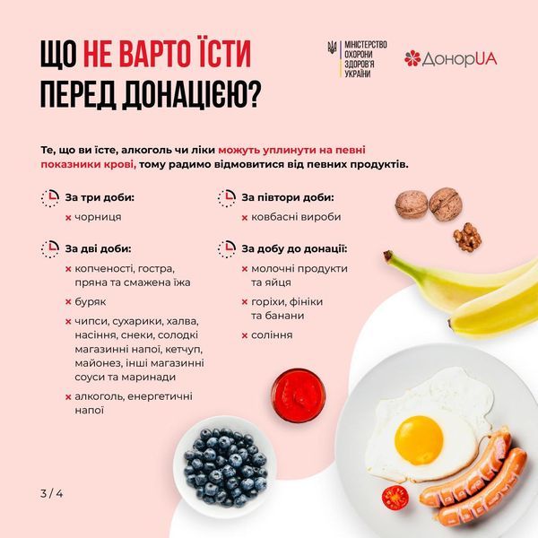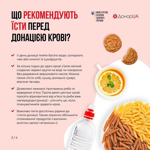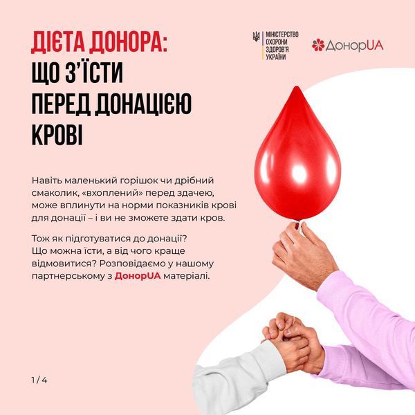 Донорство рятує життя цивільних і військових. Тому дуже важливо (якщо у вас немає протипоказань) раз на кілька місяців здавати кров. Перед донацією потрібно дотримуватися певного харчового режиму – щоб забезпечити безпеку та якість крові.