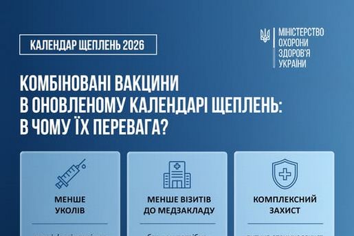 Оновлений Календар профілактичних щеплень, який набуде чинності з 1 січня 2026 року, передбачає ширше використання сучасних комбінованих вакцин. Такі вакцини захищають від кількох інфекцій одночасно. Саме комбіновані вакцини використовують більшість країн ЄС.