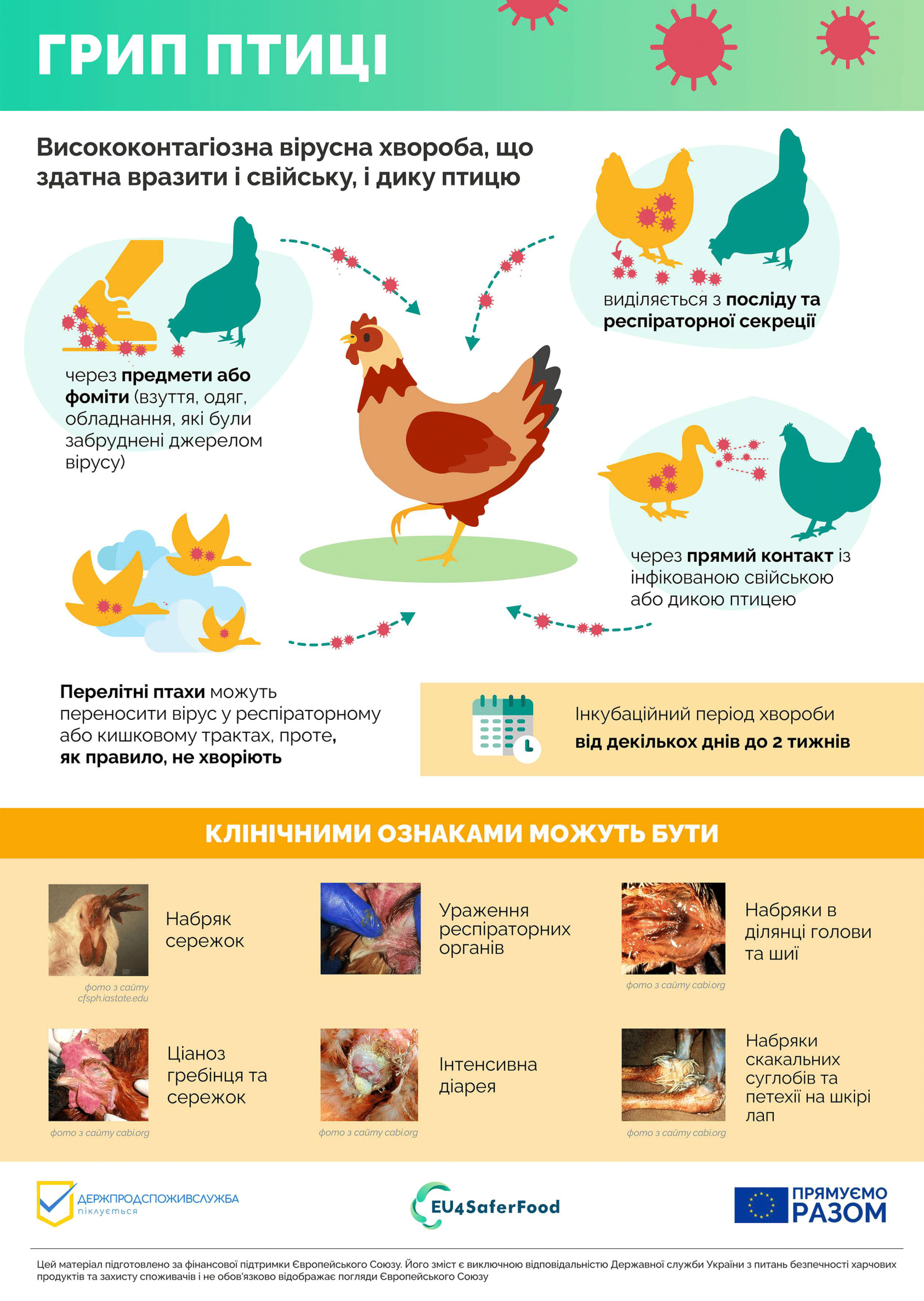 Державна служба України з питань безпечності харчових продуктів та захисту споживачів звертає увагу на необхідність прийняття заходів щодо мінімізації ризиків занесення та поширення грипу птиці.