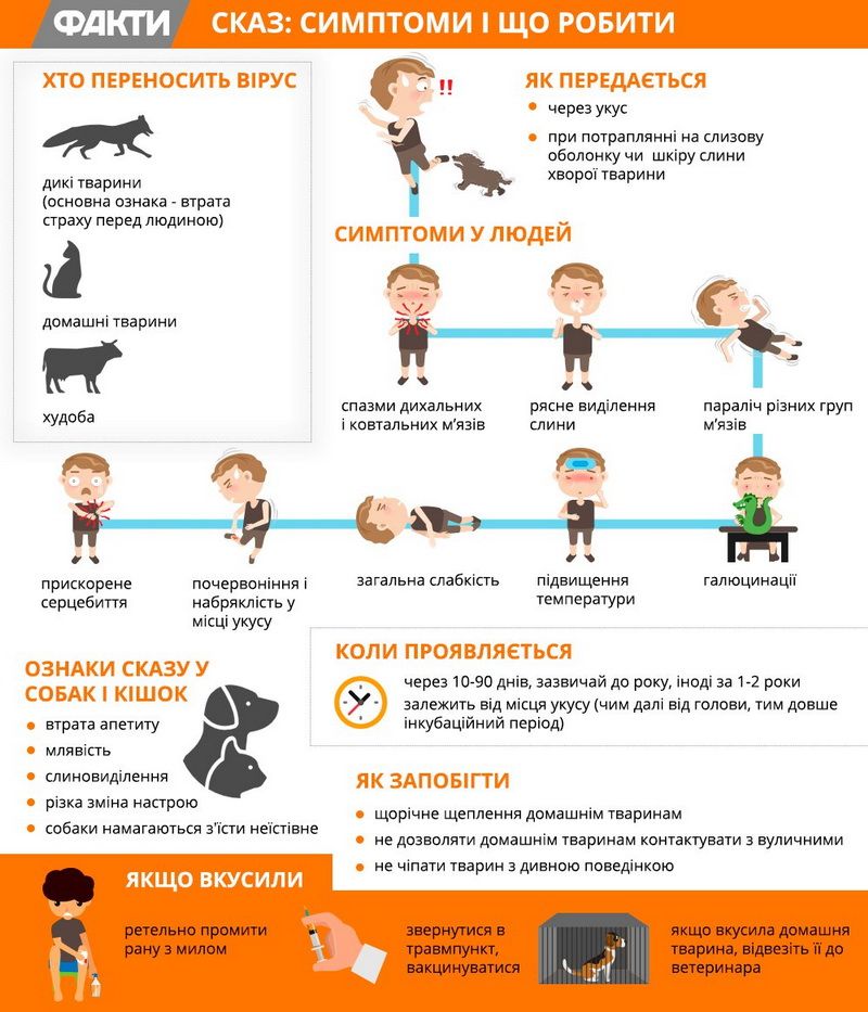 Вірус сказу – смертельно небезпечний, і за відсутності лікування він зі 100% ймовірністю призведе до смерті. З цієї причини до лікаря необхідно звертатися відразу після укусів та інших травм, пов’язаних з нападами тварин.