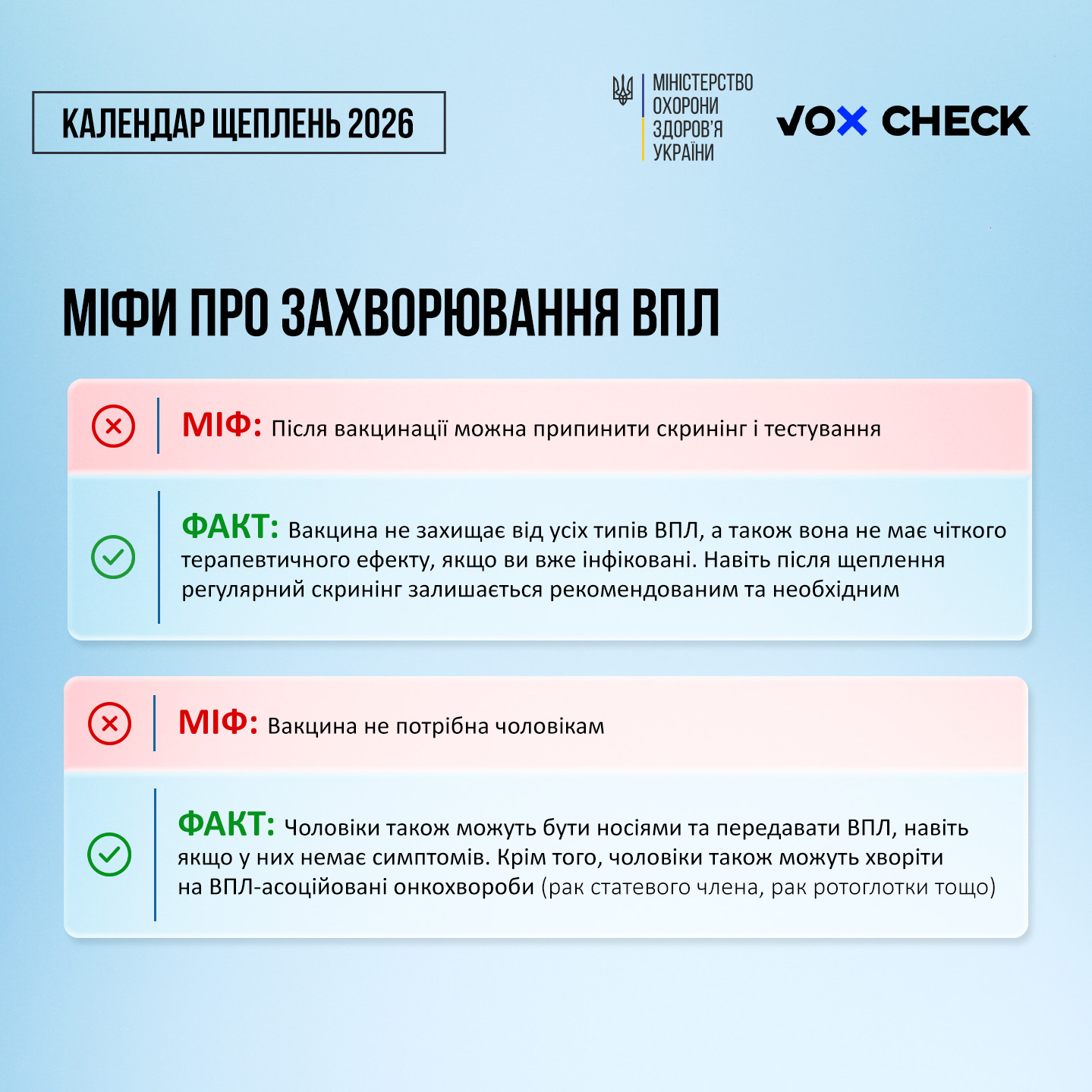 ОСНОВНІ МІФИ ПРО ЗАХВОРЮВАННЯ ВПЛ