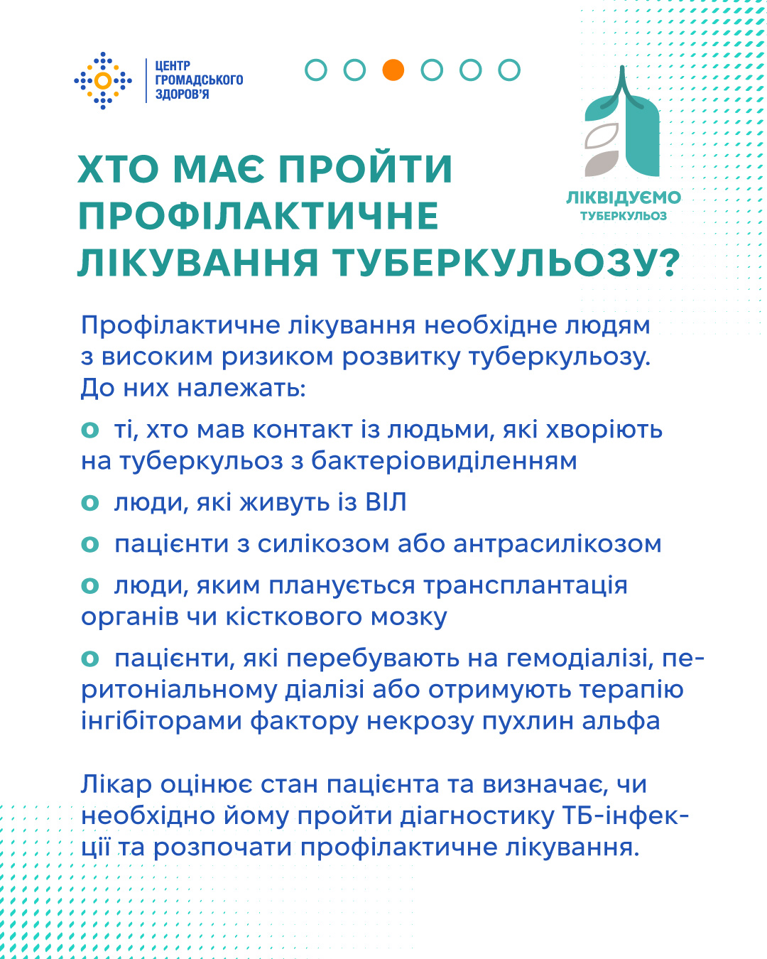 У картках розповідаємо, кому саме необхідне профілактичне лікування туберкульозу та до кого звернутися, щоб його отримати.
