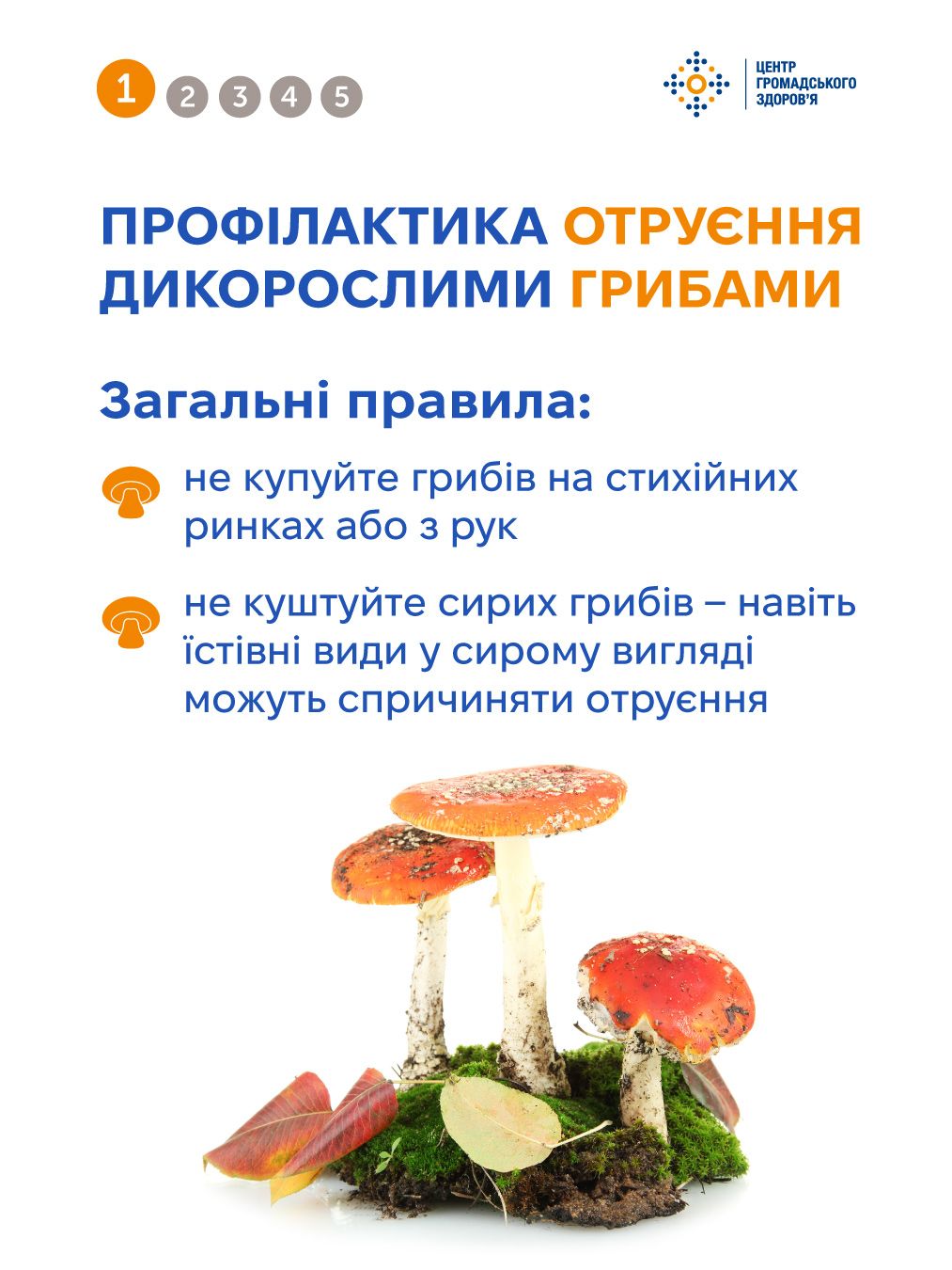 Проте отруєння дикорослими грибами можна профілактувати. Як це зробити — пояснюємо у картках та на сайті https://tinyurl.com/32a7xwbz