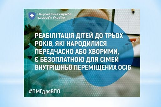 РЕАБІЛІТАЦІЯ ДІТЕЙ ДО ТРЬОХ РОКІВ, ЯКІ НАРОДИЛИСЯ ПЕРЕДЧАСНО АБО ХВОРИМИ, Є БЕЗОПЛАТНОЮ ДЛЯ СІМЕЙ ВНУТРІШНЬО ПЕРЕМІЩЕНИХ ОСІБ