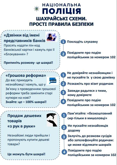 Питання протидії правопорушенням (а саме шахрайству), пов’язаним із зловживанням довірою громадян, залишається актуальним і потребує уваги та дотримання певних правил. Саме про них йдеться у інформаційному матеріалі, підготовленому фахівцями Департаменту кіберполіції Національної поліції України.