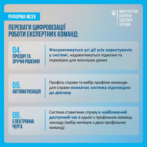 Нова система ґрунтується на електронних рішеннях, що дозволять відмовитися від паперових справ і зробити процеси оцінювання прозорими. Лікуючі лікарі та експертні команди отримають безкоштовний доступ до сучасної, більш ефективної електронної системи.