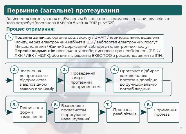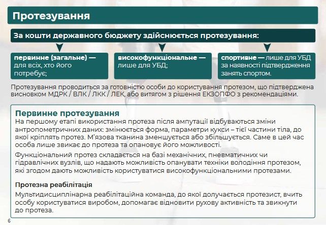 Протезування в Україні — безоплатне. Держава гарантує отримання якісних протезів та інших засобів реабілітації, покриває їх ремонт, заміну та обслуговування. До уваги користувачів сайту – Брошура “Шлях до відновлення: протезування”