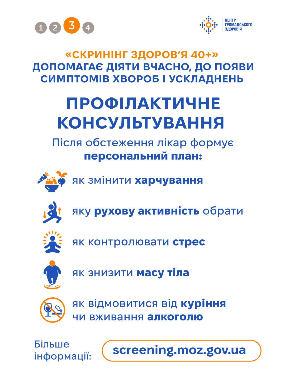 «СКРИНІНГ ЗДОРОВ’Я 40+» ДОПОМАГАЄ ДІЯТИ ВЧАСНО, ДО ПОЯВИ СИМПТОМІВ ХВОРОБ І УСЛАДНЕНЬ