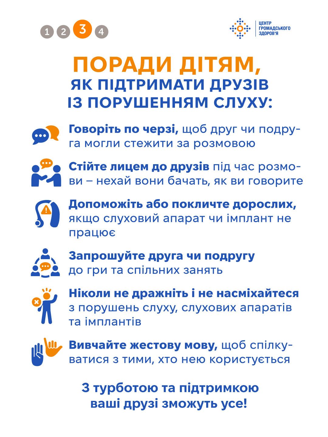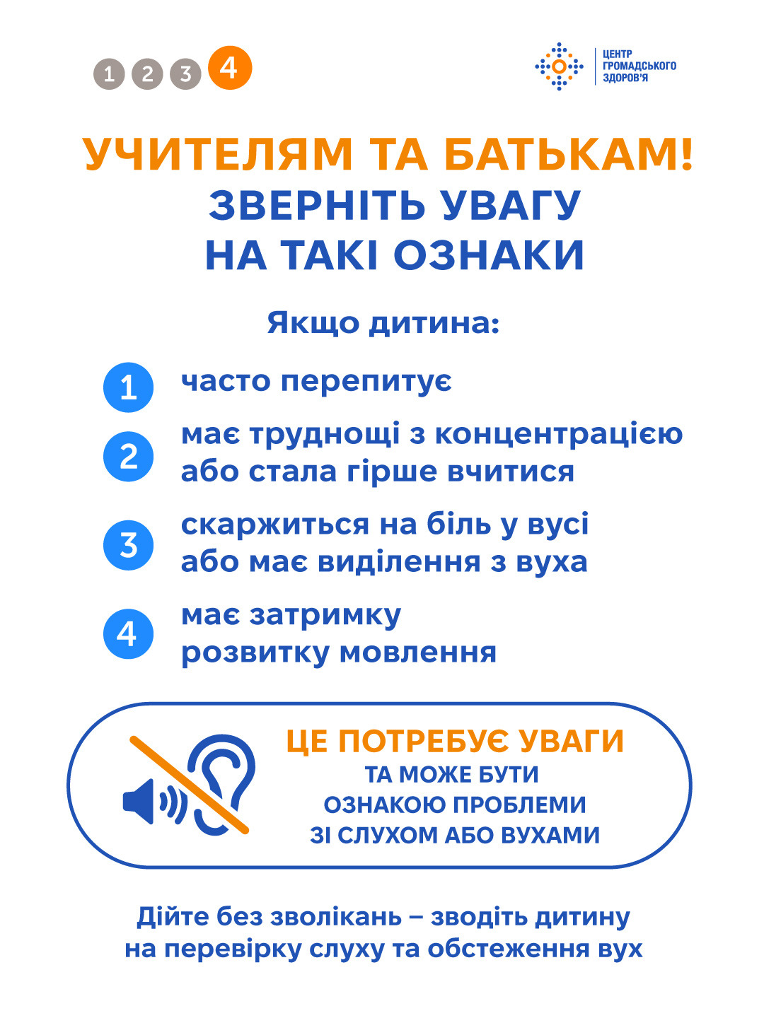 У цьогорічний Всесвітній день слуху Центр громадського здоров’я ділиться порадами ВООЗ для дорослих і дітей, учителів, батьків і друзів: