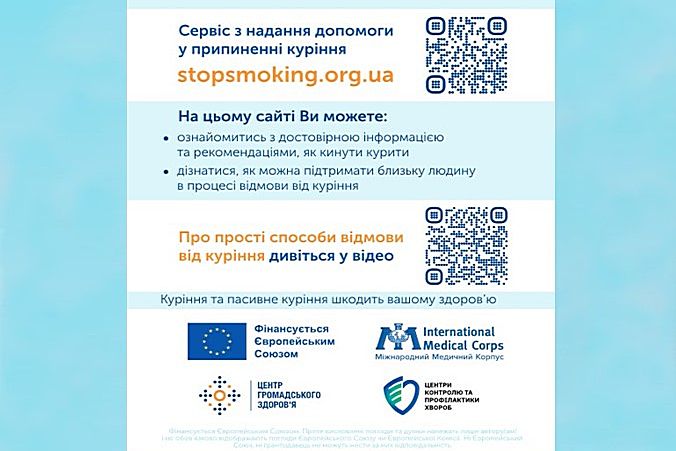 Запрошуємо всіх, хто прагне до здорового способу життя, ознайомитися з сервісом «Я кидаю курити!», що надає допомогу у припиненні куріння – stopsmoking.jug.ua. Якщо ви не палите самі, порекомендуйте його людям з вашого оточення, які потребують допомоги аби позбавитися цієї згубної звички. Бережіть здоров’я своє та своїх близьких!