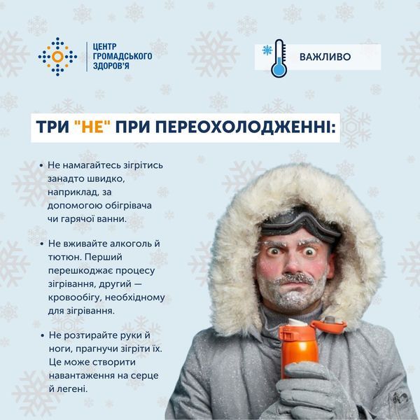 До України йде суттєве похолодання, у деяких регіонах найближчими днями температура повітря сягатиме до -25°С. Тож Центр громадського здоров’я нагадує, як вберегтися від переохолодження під час морозів.