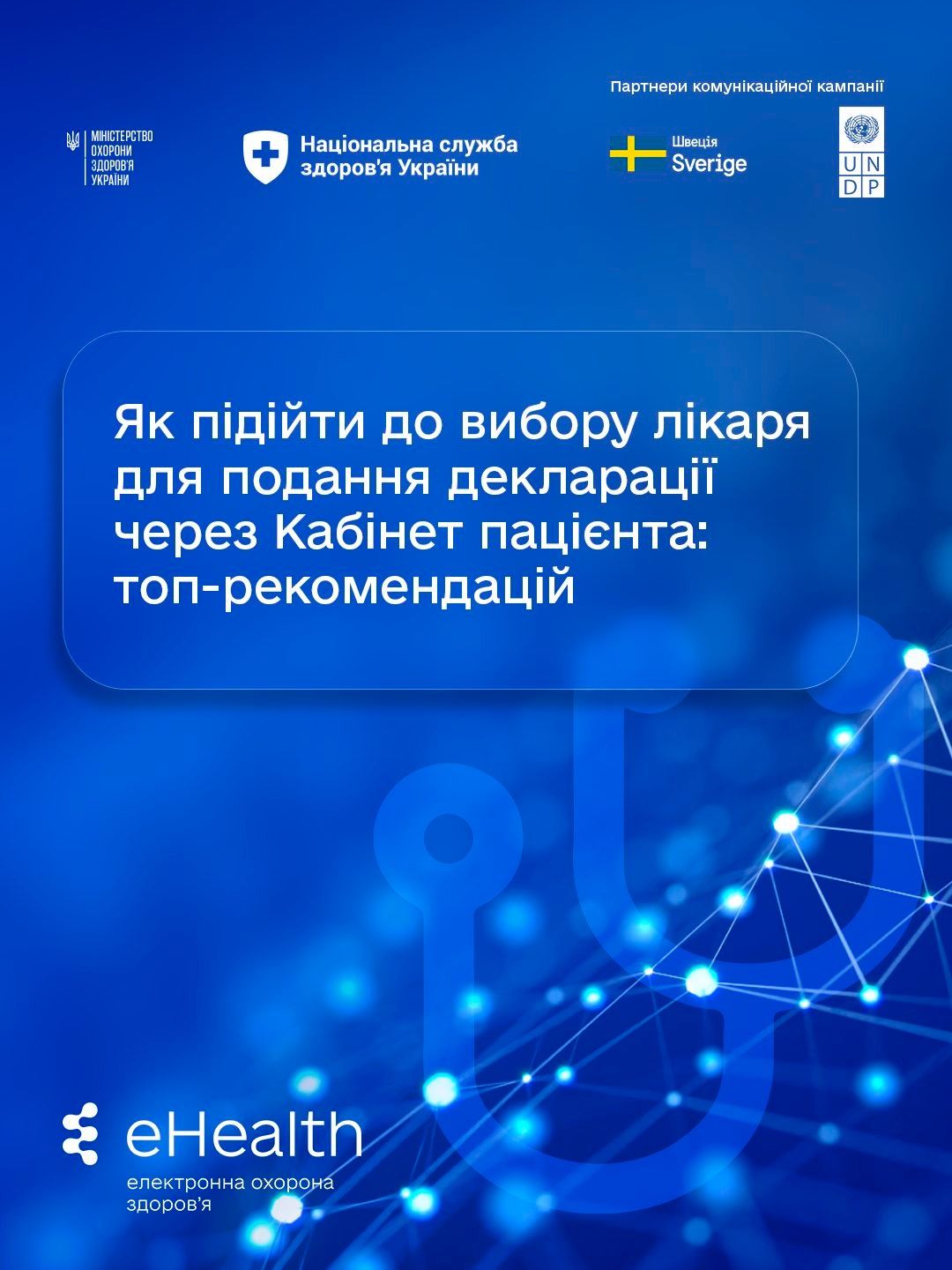 Інформаційний партнер комунікаційної кампанії щодо Кабінету пацієнта — Програма розвитку ООН в Україні за підтримки Швеції.