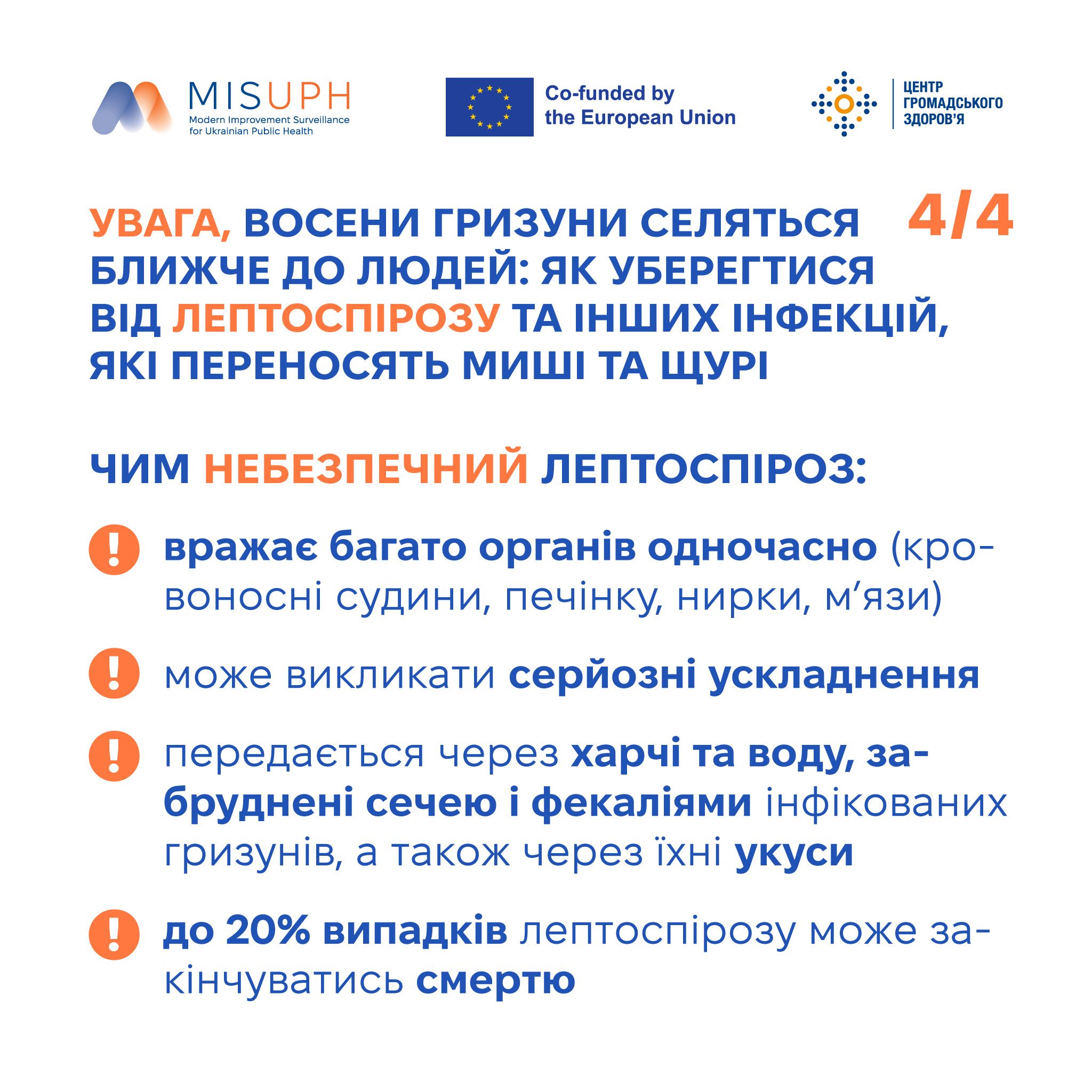 Сезонний пік захворюваності на лептоспіроз припадає на серпень, вересень і жовтень — з настанням похолодання. Чим небезпечний лептоспіроз і як уберегтися від нього — в інфографіці ЦГЗ