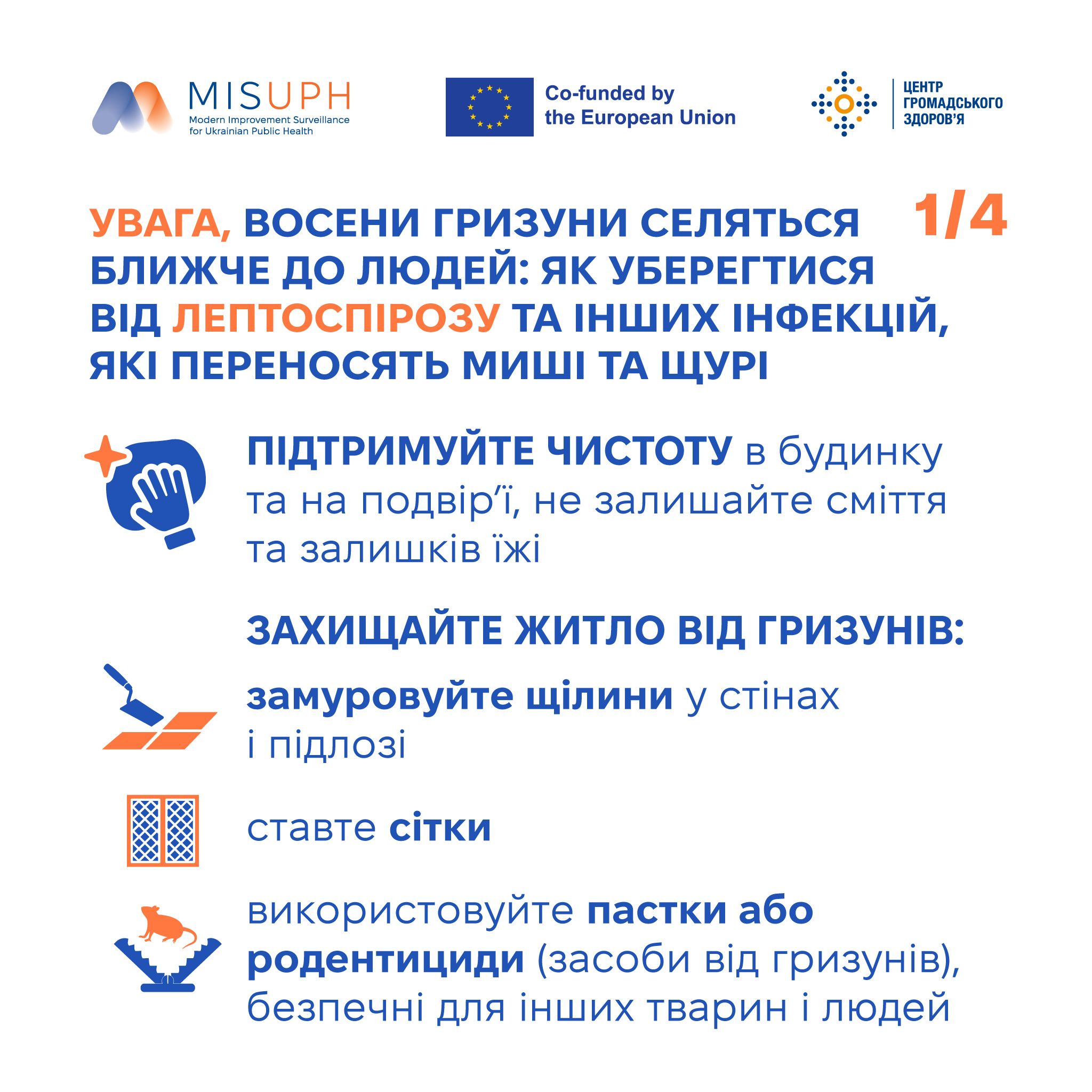 Наприкінці літа та восени гризуни — особливо миші й пацюки — масово переселяються ближче до людей, шукаючи місця для зимівлі, де є тепло та їжа. Вони селяться у будинках, підвалах, зерносховищах та складах, де живуть до весни. Це створює додатковий ризик поширення особливо небезпечних інфекційних хвороб, які передаються через харчові продукти й воду, забруднені сечею і фекаліями інфікованих гризунів, а також через їхні укуси.