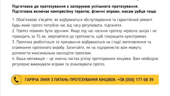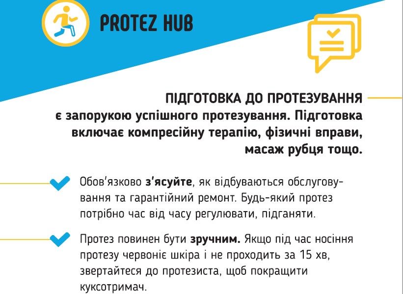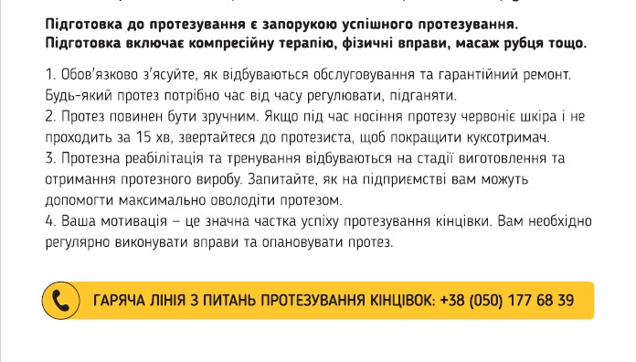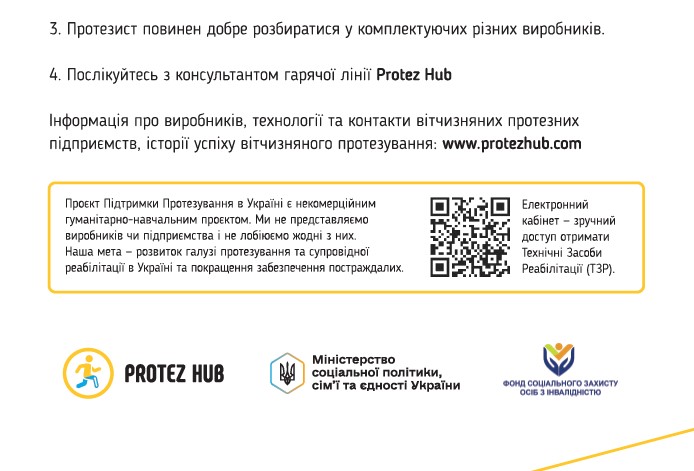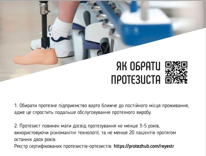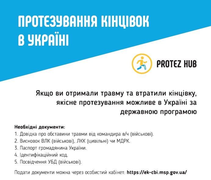 Для тих, хто потребує забезпечення додатковими засобами реабілітації (протезами, ортезами, допоміжними засобами реабілітації) – пропозиції від БО «БФ «ПРОТЕЗ ХАБ» (Protez Hub – фонду, діяльність якого сприяє відновленню інтеграції у суспільне, економічне, соціальне та культурне життя громад ветеранів і ветераном, осіб з ампутаціями кінцівок або іншою інвалідністю з ураженням опорно-рухового апарату.