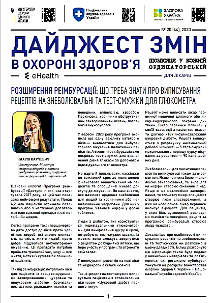 Дайджест змін в охороні здоров’я №20 (44) 2023 рік. Про розширення реімбурсації: що треба знати про виписування рецептів на знеболювальні та тест-смужки для глюкометра