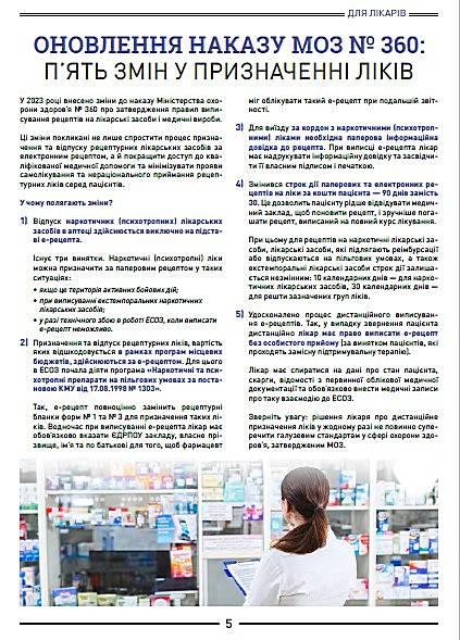 ДАЙДЖЕСТ ЗМІН В ОХОРОНІ ЗДОРОВ’Я – ІНФОРМАЦІЙНІ МАТЕРІАЛИ ДЛЯ ЛІКАРІВ