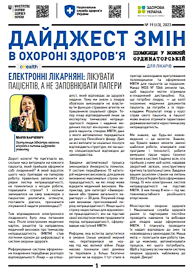 МОЗ України випускає два дайджести, які містять матеріали про ключові етапи медичної реформи. Один з них – «Дайджест змін у системі охорони здоров’я» – має на меті надання інформаційної підтримки медичним працівникам та інформування пацієнтів.