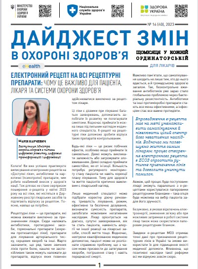 Дайджест змін в охороні здоров’я №16 (40) 2023. Про електронний рецепт на всі рецептурні препарати.
