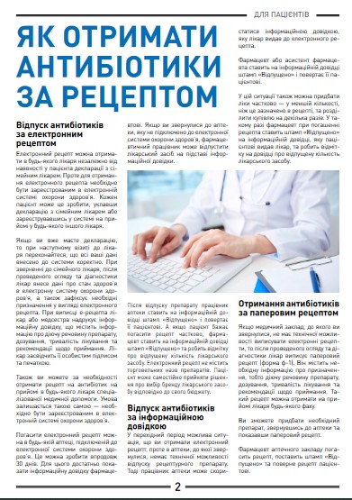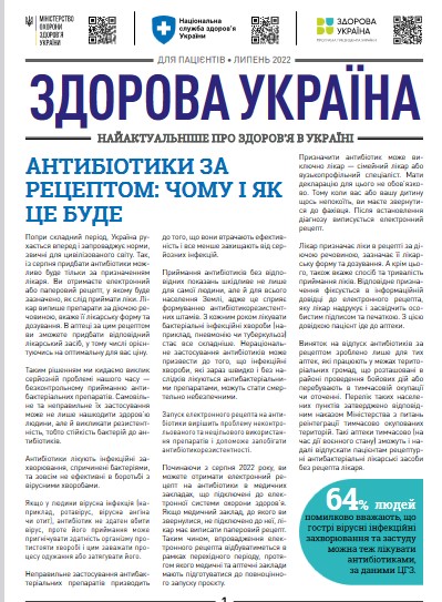 МОЗ України випускає два дайджести, які містять матеріали про ключові етапи медичної реформи. Один з них – інформаційна стіннівка «Здорова Україна» – призначений для пацієнтів.