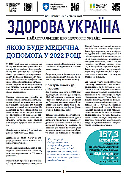 Вийшов у світ cічневий 2022 року випуск стіннівки, темою якого є основні напрямки реалізації програми медичних гарантій у 2022 році. Запрошуємо ознайомитися з матеріалами.