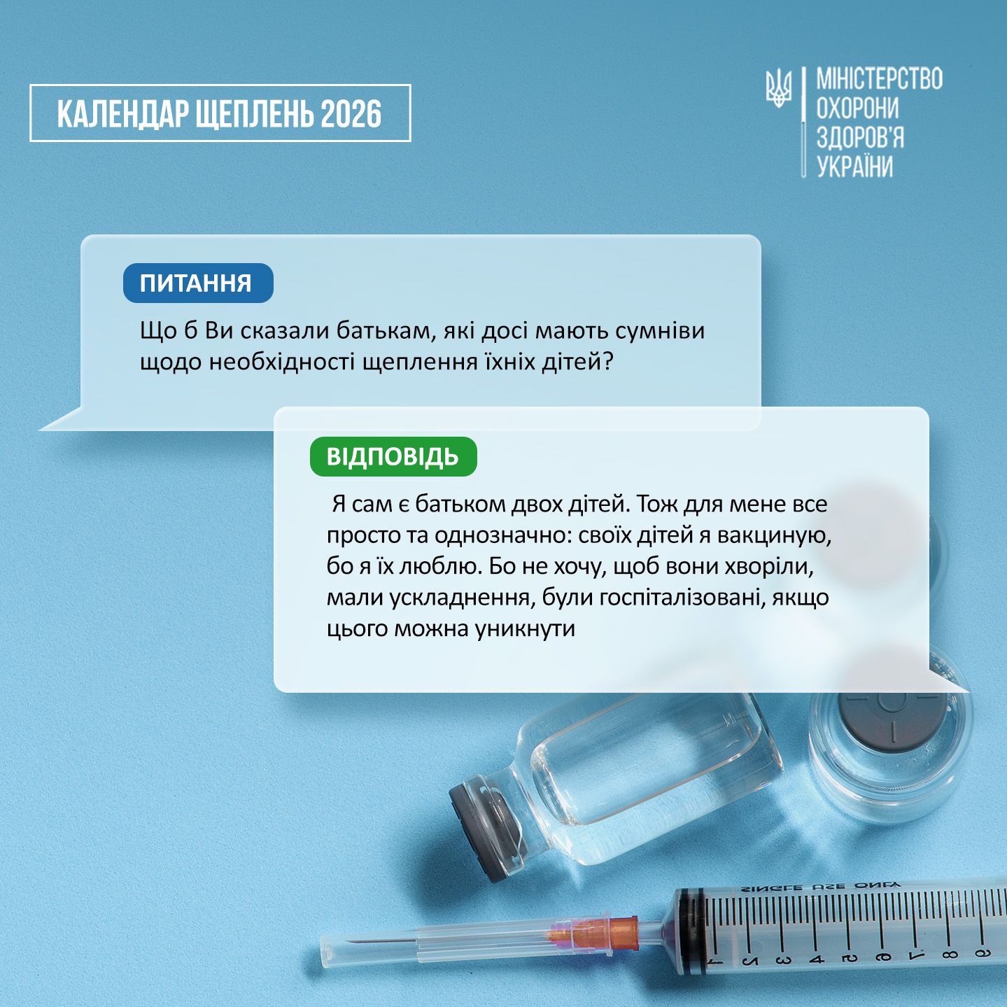 Я сам є батьком двох дітей. Тож для мене все просто та однозначно: своїх дітей я вакциную, бо я їх люблю. Бо не хочу, щоб вони хворіли, мали ускладнення, були госпіталізовані, якщо цього можна уникнути.