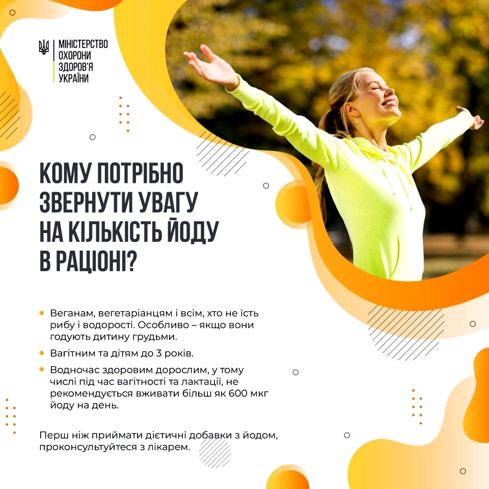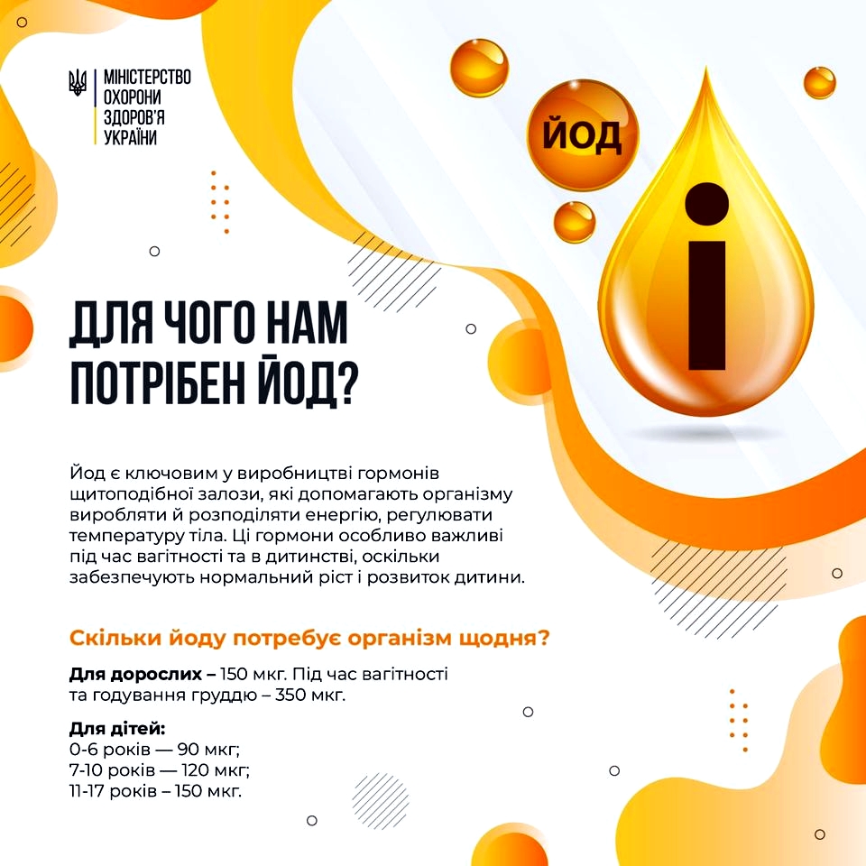 Дефіцит йоду може вплинути на здоров’я в будь-якому віці. Достатня кількість цього мікроелементу особливо необхідна під час вагітності та у ранньому дитинстві (до 3 років), оскільки нестача може погіршити ріст і розвиток дитини, зокрема розвиток мозку та нервової системи.
